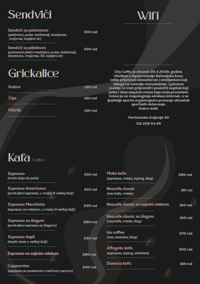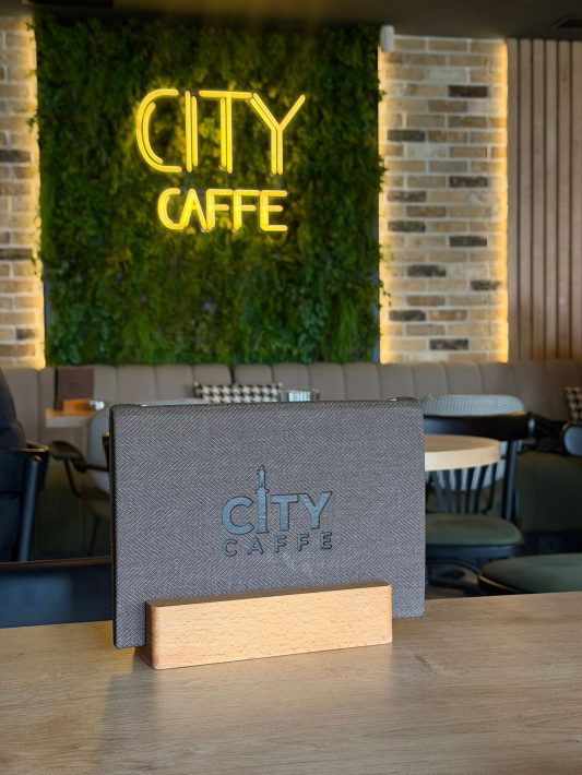 City Caffe je onaj “skriveni kutak” Bežanijske kose gde mir počinje između zgrada. Naš zadatak je bio da taj osećaj intimnosti i komšijske topline pretočimo u predmet koji gost prvi uzme u ruke. Želeli smo da kreiramo meni koji nije samo spisak pića, već uvertira u ritual uživanja u kafi.